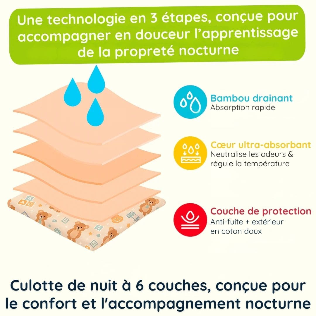 Absorbantes, confortables et faciles à enfiler, elles rendent cette transition plus naturelle, agréable et sereine pour toute la famille.