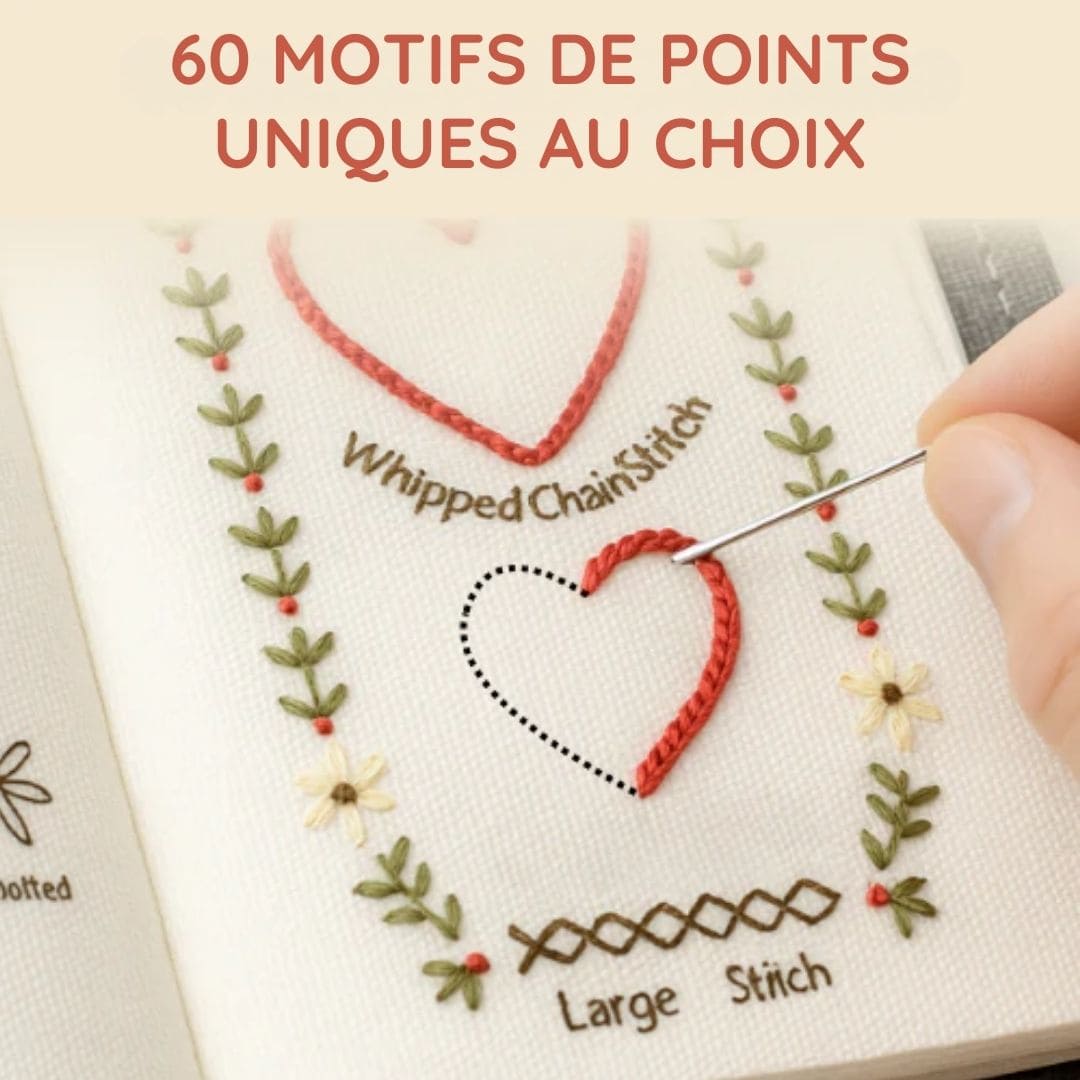 Que vous souhaitiez maîtriser les points de base ou explorer des motifs avancés, ce carnet devient votre compagnon de broderie indispensable.