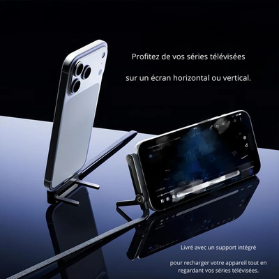🔋 Support de téléphone pliable avec câble de charge rapide à angle droit