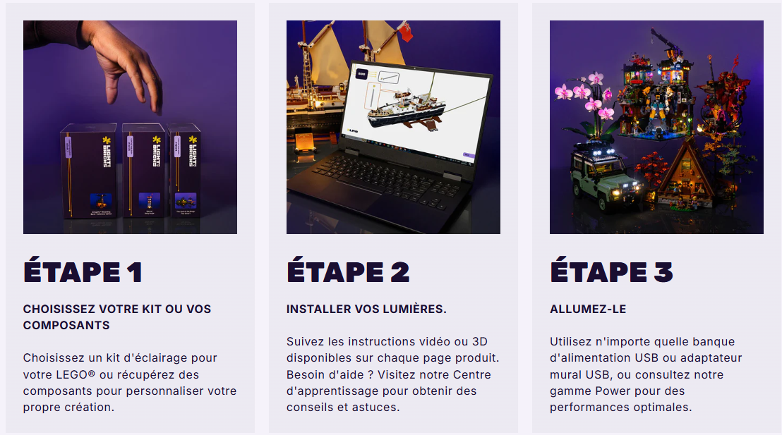 Alors que la plupart des marques s'en tiennent à des fils tressés volumineux, nous avons repensé nos câbles avec un profil plat qui offre une solution plus propre et plus stable et reste fidèle aux principes de conception LEGO®.