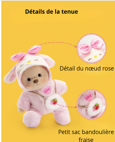 Chaque détail d’Amora est pensé pour symboliser la douceur d’un câlin et la chaleur d’un "je t’aime". Sa texture moelleuse et son design unique fraise-love font de ce petit ours un messager d’émotion.
